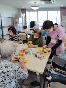本日は、夏の工作『フラワーボックス』を製作しました! 木の箱に花を生けるためのオアシスをいれて 造花を固定して作っていくのですが… 大小さまざ...>>続きを読む