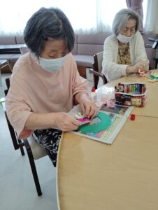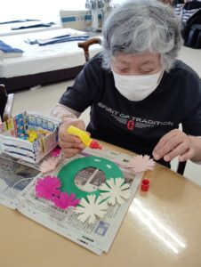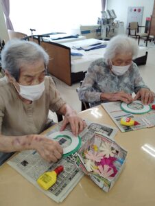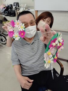 8月末にデイサービスでコスモス工作を行いました🌼