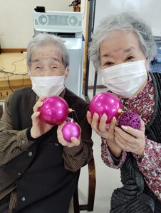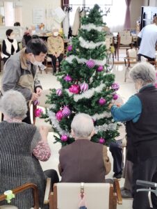 男性利用者も、背の高さを生かして、飾り付けをしてくれました。