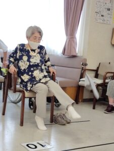 椅子に座ったまま、スリッパを飛ばして、得点を競います。