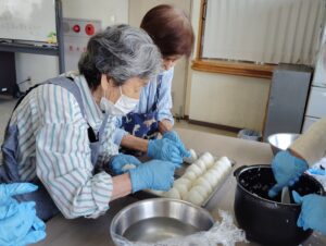 仲良しコンビでおにぎりを握っています。