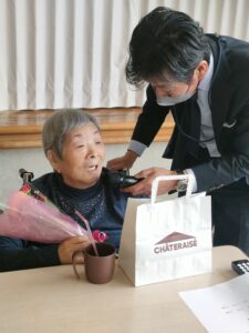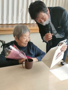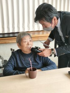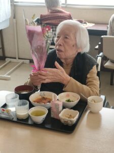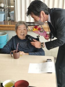 K様はなんと99歳白寿になります。とても笑顔が素敵な華道の先生です🌺🌺🍵