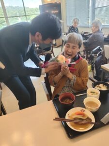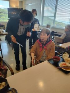 とてもお元気で施設長より「幾つになりましたか?」と言われ「60代!」と、とてもサバをよまれており、若いですね!🐟