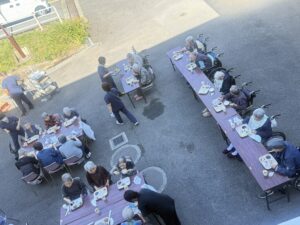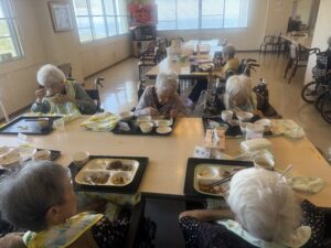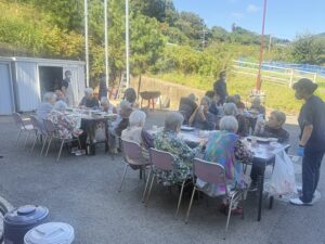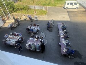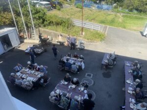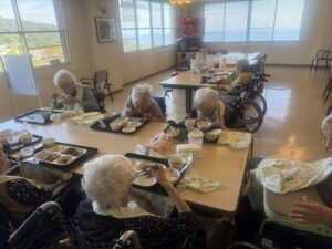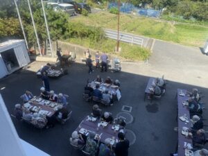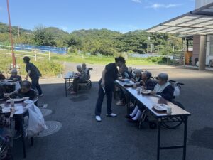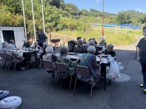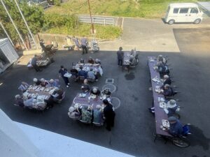 2025年10月17日 ケアハウス 🏚️秋のBBQ(バーベキュー)🥩 本日、秋晴れでとてもよいバーベキュー日和になりました☀️☀️ 毎年恒例のバーベキュー開催です🍖🥩 施設長と職員が一生懸命に焼いています🔥🔥 遠くからですが、皆さんが和気あいあいとお食事をしているところです😄😄 こちらは、食堂でご飯を食べている写真です📸📸 来年もバーベキューしますので、楽しみにしていて下さいね🌟🌟 🎇昼間の花火大会🎆 🏋️みんながんばれ!秋の大運動会!🏃