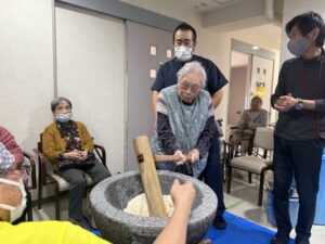 来年の干支である午年生まれの皆様に、餅つきをお願いしました🐎